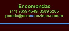 Olá Visitante! Agora que você já conhece as delícias doisnacozinha, deixe um comentário em nosso livro de visitas.
